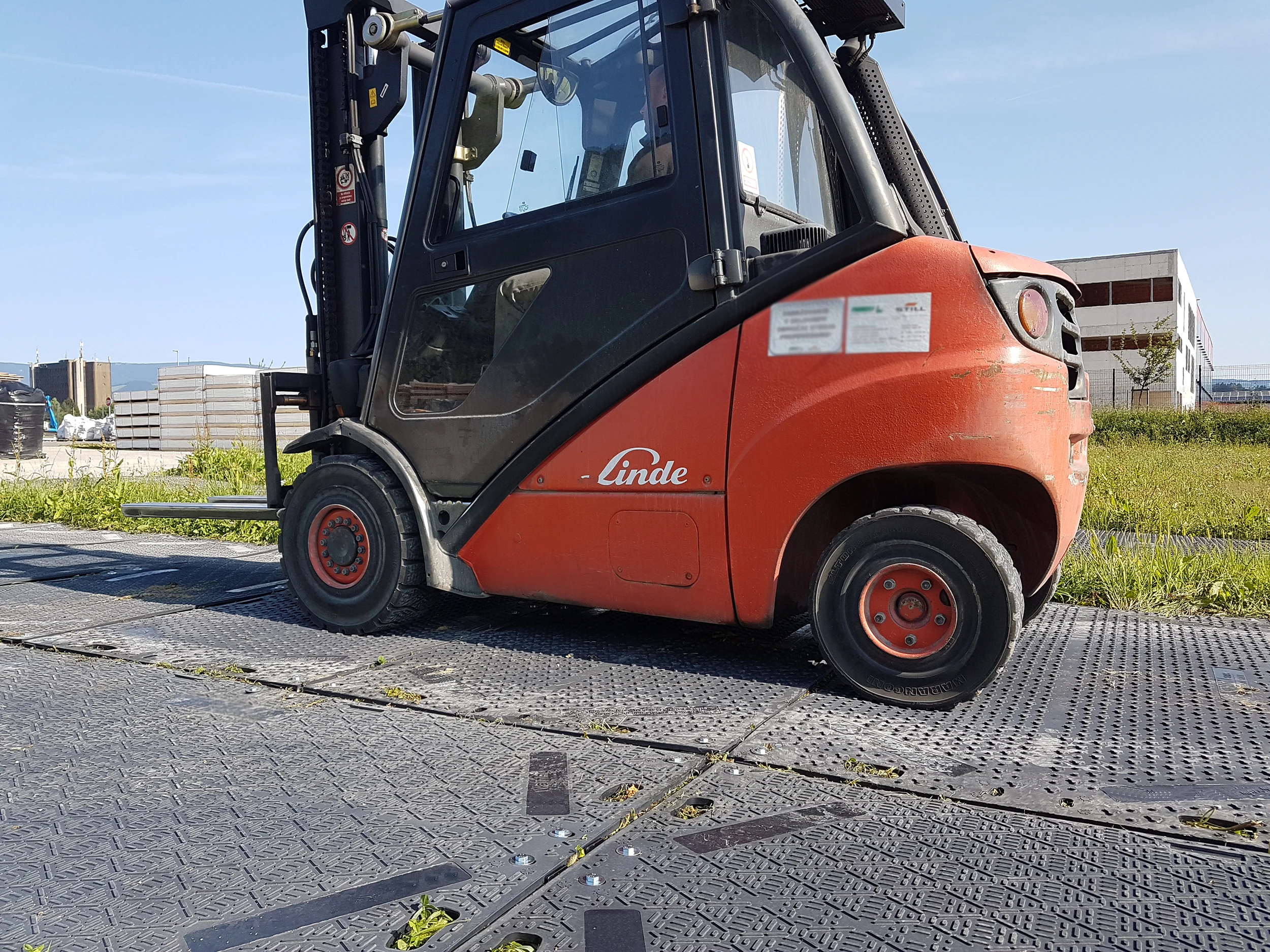 Molemmissa päissä olevat kantokahvat sekä kiinnitysreiät jokaisessa kulmassa tekevät ajomatoista (maansuojausmatoista) helppoja käsitellä, siirtää ja asentaa käsin. Tutustu myös liitinvaihtoehtojemme valikoimaan. Hiekkapuhallettu kulutuspinta on suunniteltu ja testattu tarjoamaan markkinoiden paras pito kumipyöräisille ajoneuvoille. Maton molemmilla puolilla on kaksi erilaista pitopintaa – toinen ajoneuvoille ja toinen jalankulkijoille. Sen ainutlaatuinen rakenne kompensoi äärimmäisten lämpötilavaihteluiden aiheuttamaa lineaarista laajenemista ja kutistumista.